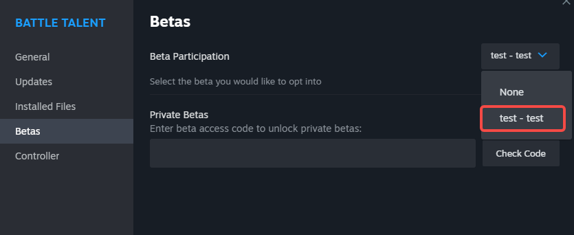 Steam players: To switch to a custom branch in the Steam client, right-click on the game from the library page and select "Properties". Among the available tabs will be the "BETAS" tab. Then select test-test.