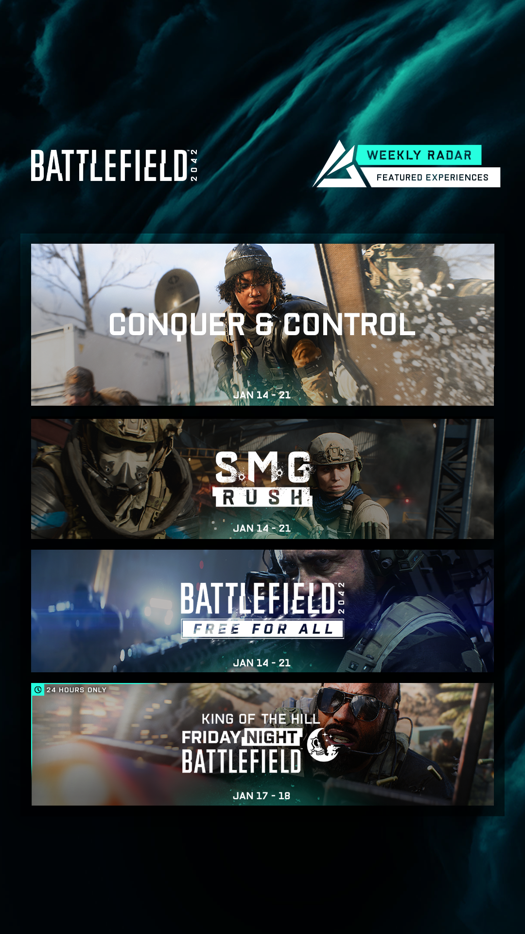 Community Calendar Discover a wide variety of Community Events, Featured Experiences and Double XP moments taking place on Battlefield 2042 via our frequently updated Community Calendar!