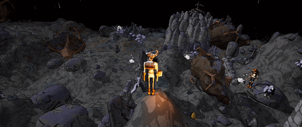 We knew that having mountains would add a sense of grandeur to the game world. However, our world is procedural, making it hard to have predefined giant mountainsides. Besides, most games with such mountains usually don't allow players to interact with them. But in our game, vertically diverse landscapes can be crossed, even though they presented issues with the physics of certain game mechanics, such as when explosive flasks bounce off the mountains. In the end, we decided to keep this feature as it helps players feel more connected to the environment.