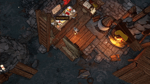 As you can see, the workbench (as well as the fire on the right) have a slight outline and transparent color when occluded. The same also goes for enemies.