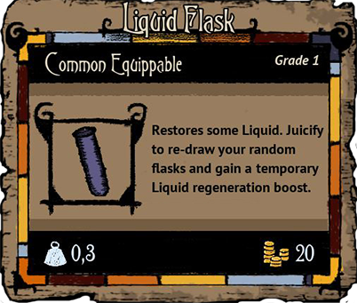 The first change is a re-drawing mechanic. You have 2 fixed flasks and 3 random flasks at you disposal. The 3 random flasks are drawn from your "deck" of 10 flasks in your cauldron. To have control over their "hand" of 3 flasks, players tended to only put 3 flasks into their deck. To encourage branching out, I implemented a mechanic that lets you re-draw your hand when using a Juicified Liquid flask.