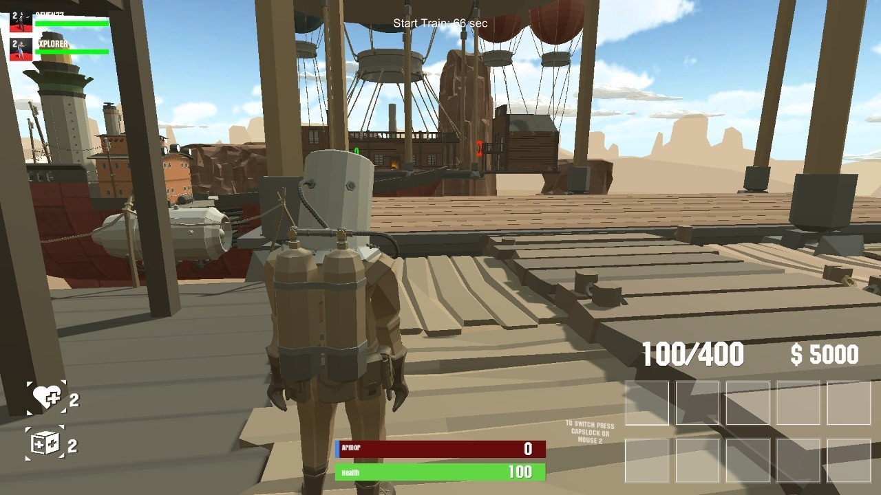 1. Switching localization now works correctly in the menu and switches the language; 2. English voice acting for characters to select English voice acting for characters, select English from the menu; 3. Attached voice acting for the arms dealer at the location of the "Wild West"; 4. Attached voice acting for the doctor at the location of the "Wild West"; 5. Attached voice acting for the doctor and the merchant at the location with the ships; 6. Sound design for characters is now used from the settings; 7. 2-new skins for "sawn-off" weapon; 8. Purchase of new skins in the store and selection in the inventory; 9. Fixed a bug with returning to the gameplay from the menu; 10. The choice of skin for weapons now works out stably; 11. The ability to minimize the matchmaking window and move through the main menu at this moment; 12. Displaying in the menu in a minimized form of matchmaking results; 13. At the start of the application, the music settings are now taken from the general ones; 14. Displaying the main characteristics of allies;