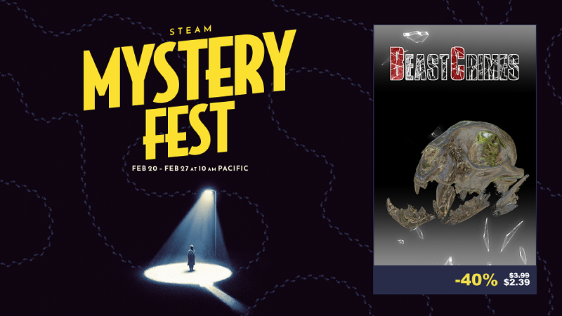Beast Crimes has been selected to partipcate in Steam Mystery Fest! To celebrate, the game will be on -40% discount.