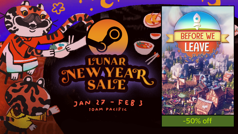 We've got some awesome news to share with you today! Before We Leave is currently 50% off during the Steam Lunar New Year Sale!