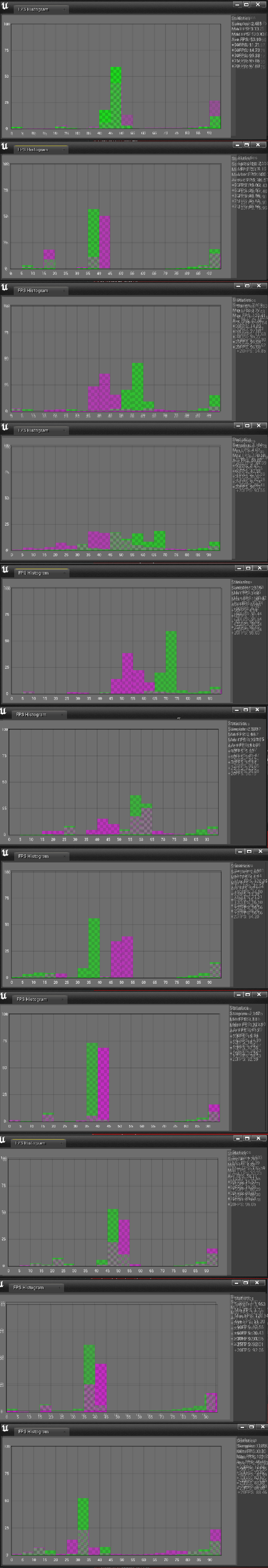 As a metrics of the optimization I have used FPS histogram before and after the work. The result was surprising, it wasnt as good as I hoped and some of them clearly behave a little worst. Yet, overall, you can see the improvement, also on stability side. The purple bars are after the changes. Most important and a litte funny change was toward switcheroo mode. Before, if you would move the mouse fast, game FPS might went to almost 0. Now it is much better, all thanks to reducing the responsivness. Yeah, you read it right. I reduced the game reaction to hover events to make it more responsive. Reduce it to increase it.