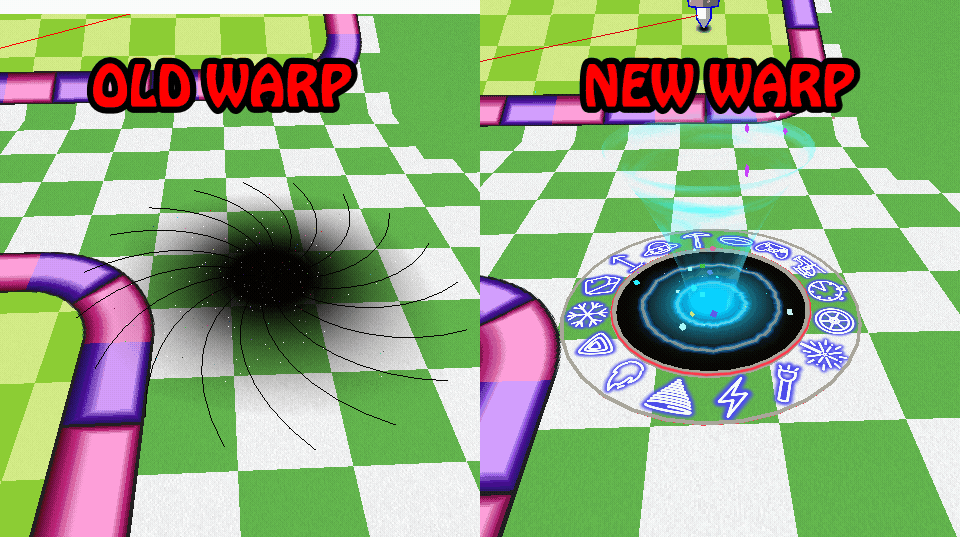 The secret warp triggers whenever any ball stands in a specific spot once. This warp will open up for a certain amount of time until it despawns. if a ball steps on it, it teleports to an otherwise unreachable location, where the warp relocates for a return trip. This area usually contains a challenging treasure, with a reward for any of my secrets I talked about, the trigger event for this warp is usually hinted at in a subtle way. It WON’T come back again, btw, once it despawns, you have to restart the hole.