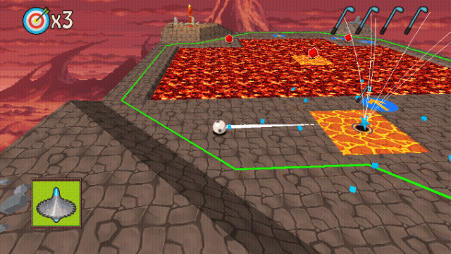 Here we have a lot of new hazards, tricky layouts, and environmental puzzles that take full advantage of 2 new abilities and some Binary Golf mechanics. This course is not as easy as the first course, but still, it's easy.