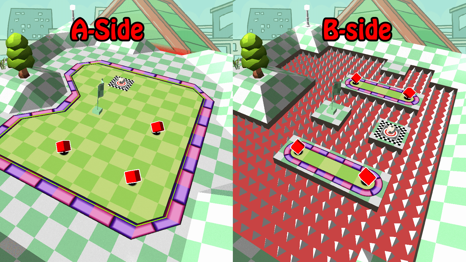 Now, this is what you'd call the "B-Side" of the game, this is the same layout of the original courses but much harder, I haven't done what completing this mode would do, so let's keep an eye out for that. No, there won't be C-Sides, although there are Episode 13 holes, which are the most difficult, very-specific challenges in the game, and beating them gives you clues on beating the boss of Episode 13 which is the mysterious powerful machine-learning robot: Telix.