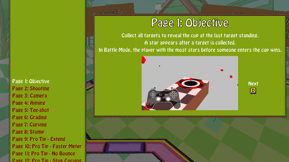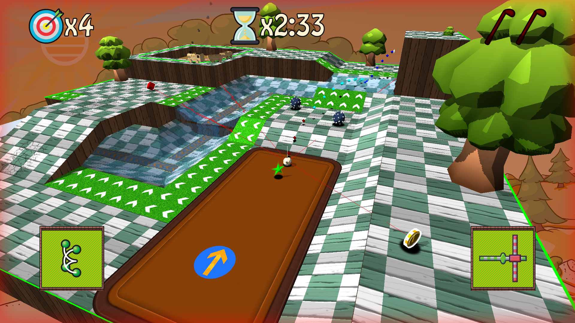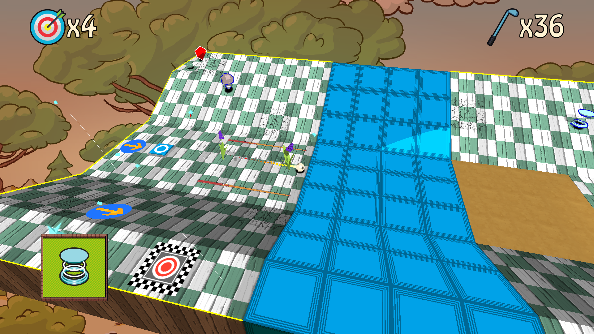 If you wanted to go somewhere in the main courses but you don't want to start from the beginning, then I added checkpoints to start from hole 7 or 13 (out of 18 holes).