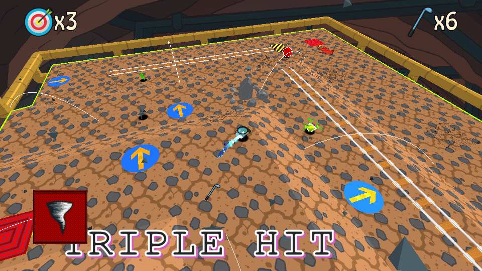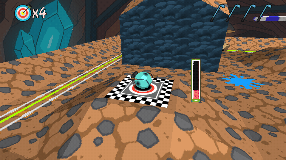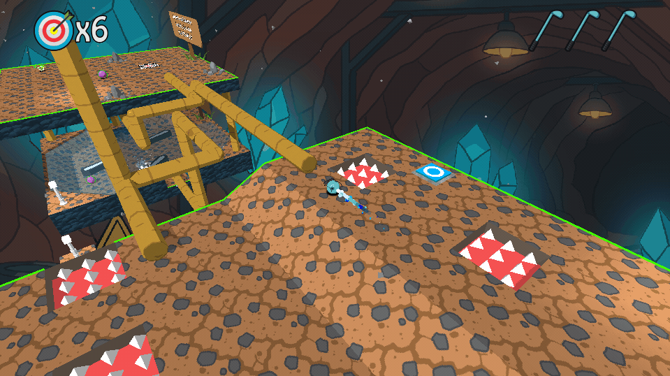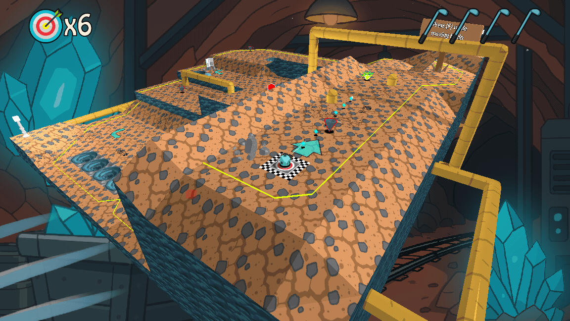 The mines are full of old nanotech piping systems. These pipes can suck your ball in and spit it out somewhere else on the course, some even split into multiple paths — it’s up to you to choose the best one!