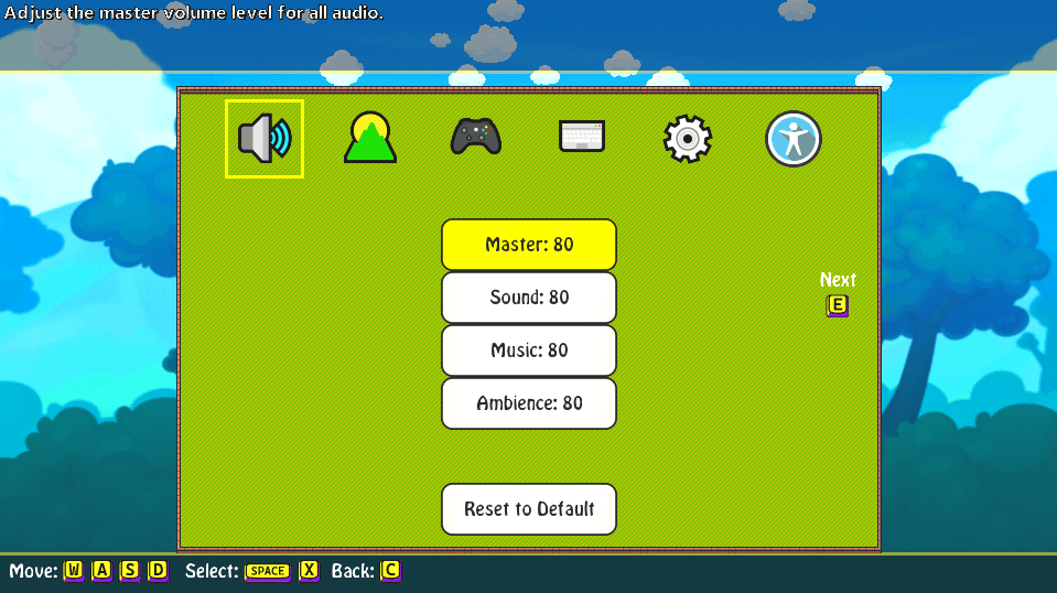 The Options Menu has been re-organized for easier navigation, splitting them into 6 categories: