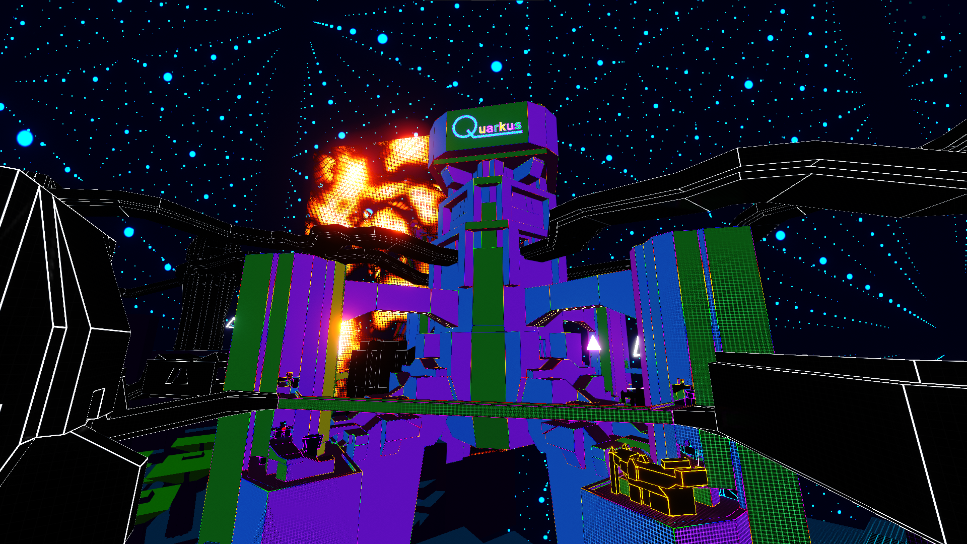Each of Quarkus' four towers wields the powers of ice, fire, corrosion, and laser... Almost like they were copying their 4 megacorp competitors. Equip the right gear to deal with each one!