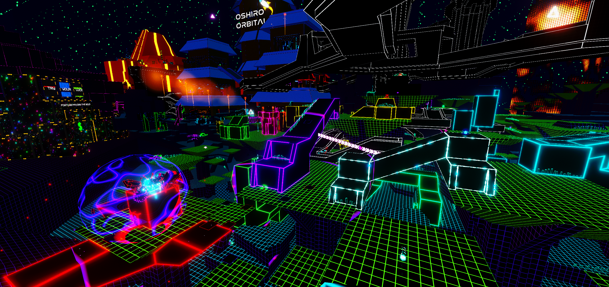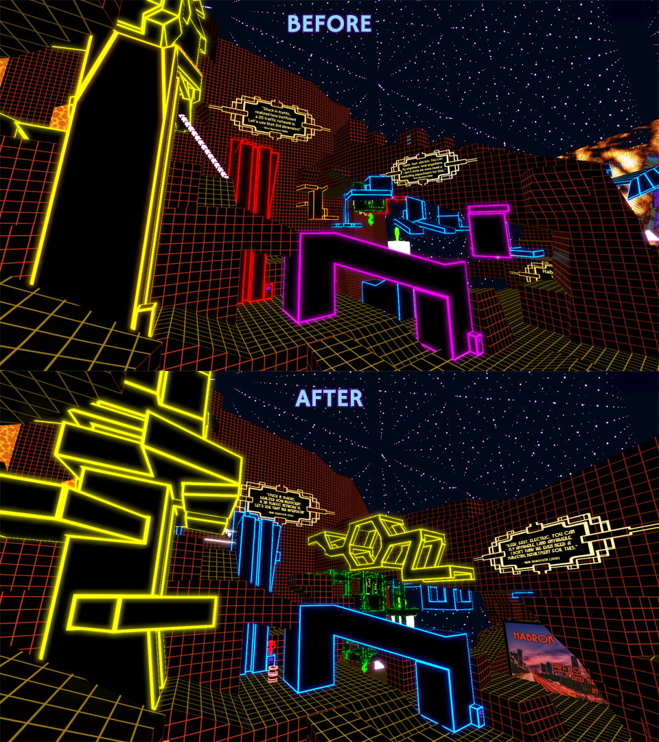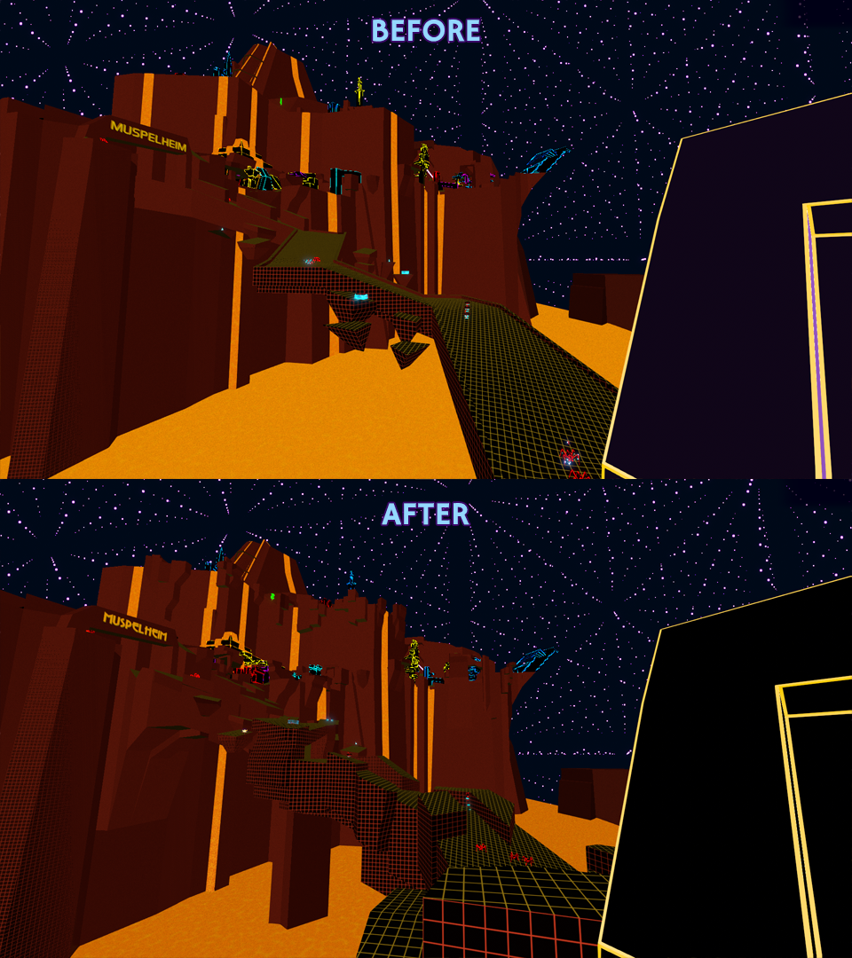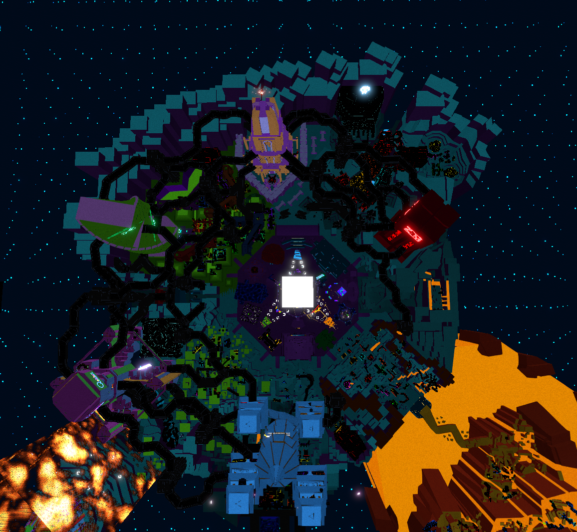 You may have noticed that the Zheglov-Mang megacorp has a new outer shell. The surrounding area is also taking its final form with craters and cracks from an ancient war fought between Sol Fusion and Zheglov-Mang. Don't rush to explore it yet, we haven't added the servers and secrets. Those will come in the next major update! Also be careful you don't fall through any holes in the ground - it was a very busy week and not everything is polished yet.