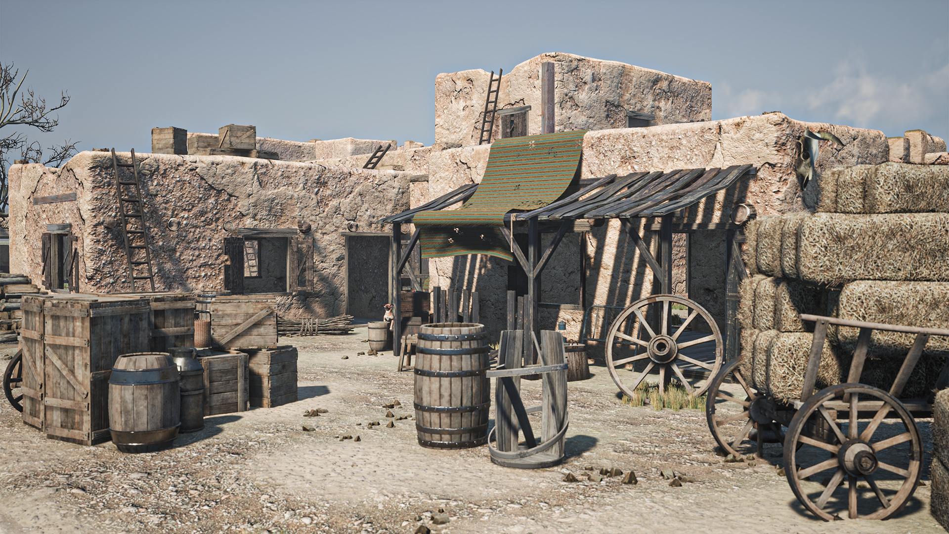 The maps in Black Powder are fictional locations that could have existed in the wild west based on historical models. By creating all 3D models based on original templates such as historical photos and sketches, we are able to capture the breathtaking atmosphere of the time with all its facets. The design of fictional locations allows the level design to be flexibly adapted to the requirements of the gameplay of the different maps.