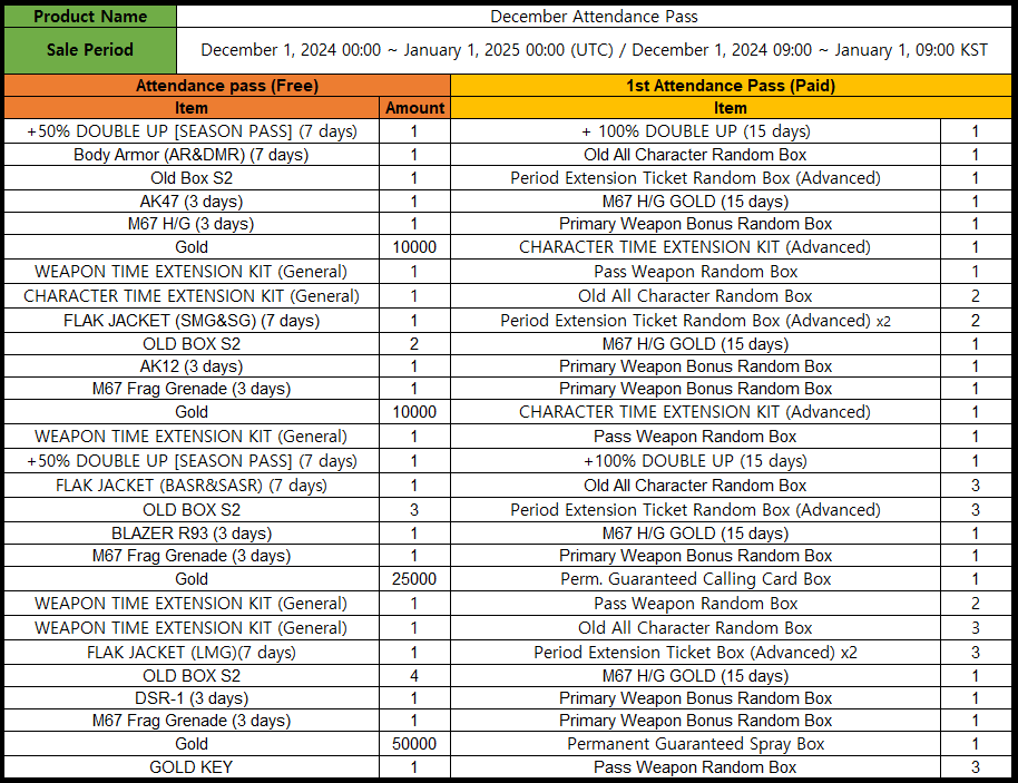 ㆍDecember Attendance Pass Reward