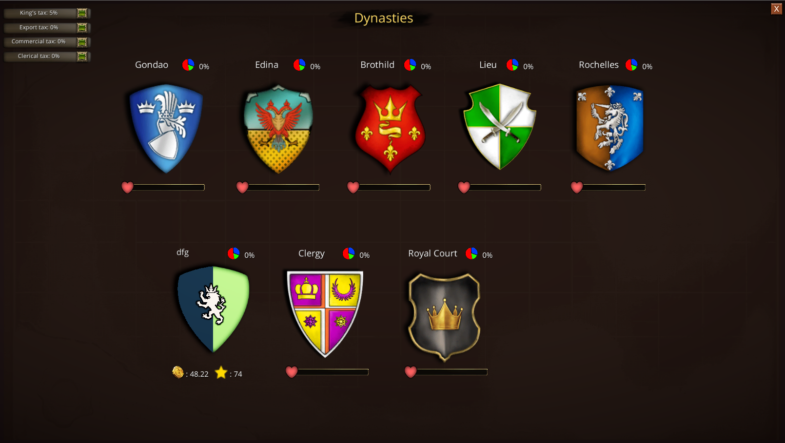 This feature will introduce more depth into the Kingdom and what is happening with it's economy, how it is handled and influenced and so on. In order to do wholesale, you will have to register yourself as a form of a Dynasty so that your crest will be assigned to the Blacksmith Guild. Marketshare will play important role as the one with the highest one will be able to submit Tax changes or have the upper hand in bigger decisions! (King's tax is annoying you for so long!? Then change them!)