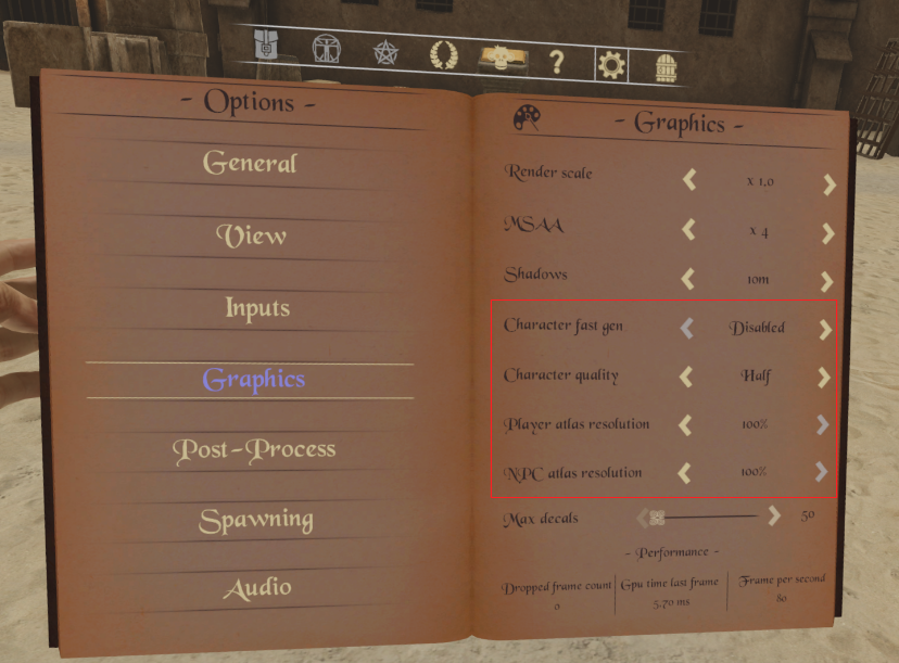 Besides spawning lag, if you are still feeling performance issues in general even after 8.3, be sure to try all the various graphics options included in the option book, and also remember that mods may impact performance too. Also, you might have missed the following new options were added to help lower spec video cards (click to enlarge): (atlas refers to resolution, so lower is better at the cost of graphics)