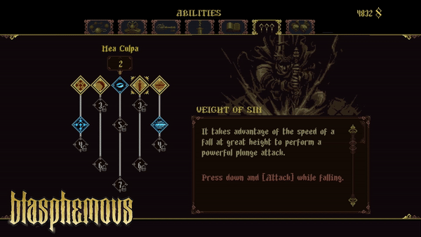 To increase the power of your sword, you will have to visit Mea Culpa Shrines where you can spend Tears of Atonement to unlock new combat moves. Visiting additional shrines will increase the Mea Culpa’s strength and thus allow access to more powerful techniques. These can come in the form of extending your basic combo to downward thrusts with radius damage and more - but these will remain secret…for now.