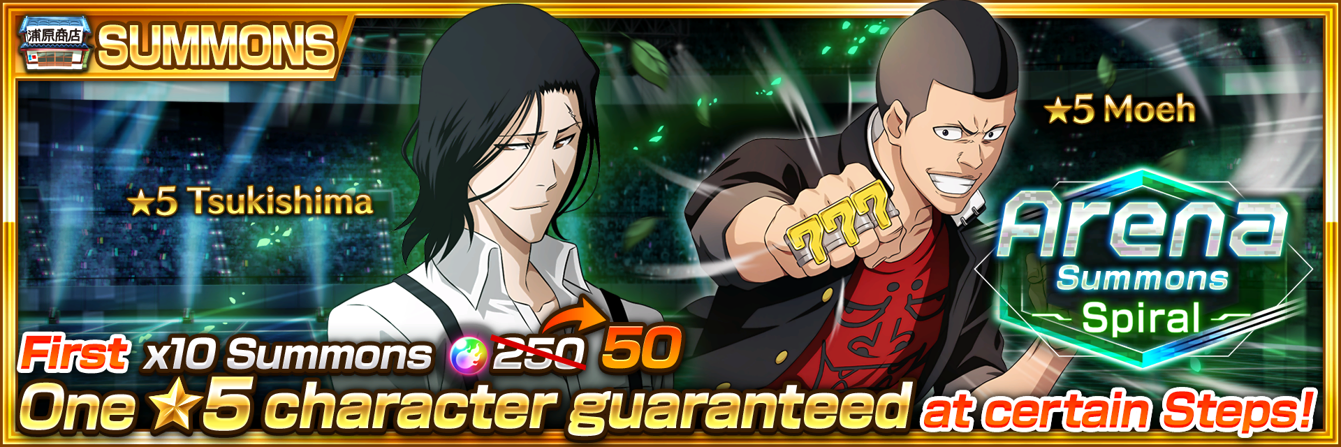 The Arena Summons: Spiral features a ★5 character draw rate of 6% and comes with free ★3 Power Hearts.