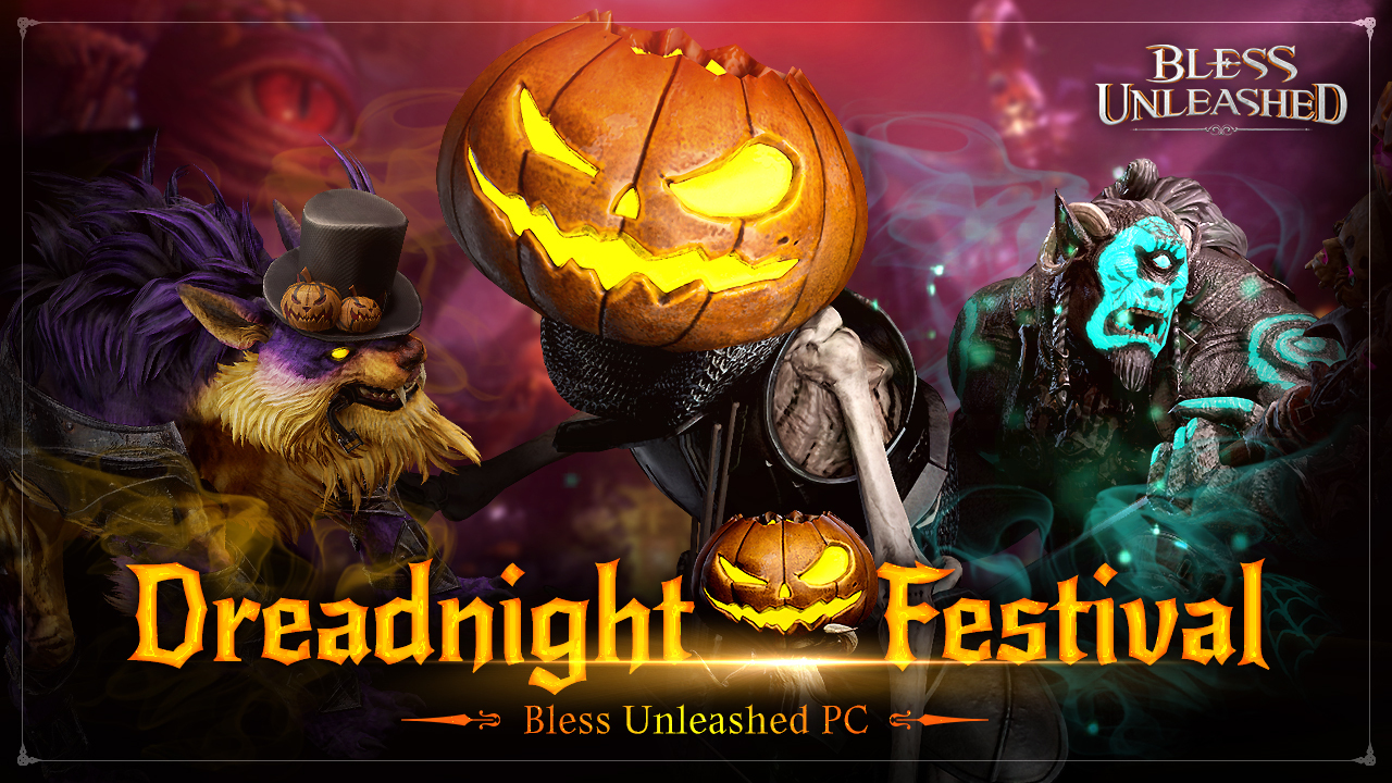 A special 5-player Dungeon only available during the Dreadnight Festival period of Bless Unleashed PC! Take a look at the [Festival of Fear] event Dungeon full of Halloween atmosphere, then you will soon meet “Fright Lord” with strong and scary power waiting for you! As a special reward for completing the Dungeon, Dreadnight Festival Chest and Dapper Dreadnight Warg Mount can be obtained by rate. - Requirements : 10Lv or above / Gear Score 118 or above