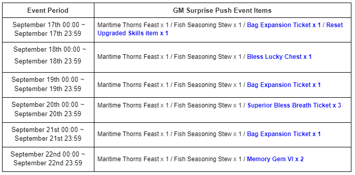 - Event Period : September 17th 00:00 ~ September 22nd 18:00 (PDT)