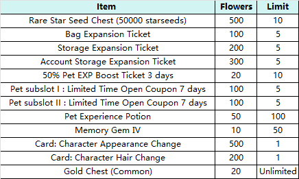 January 29th: Blossoms of Early Spring x99, High-Grade Bless Rune Voucher x10