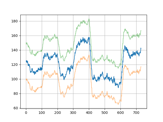 Here are example events affecting price (blue line is the exact price) - A good example of sudden drop and increase in a coin: - Bad example for increase and decrease of price - Almost stable coin price that has increased in value after some time - An increase in increments and coin doubling its price in a year - Differences between varying increase / decrease events. Some events have more effect on price.