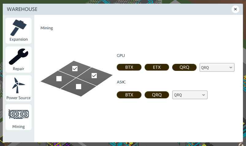 8 tutorial style campaign levels that will let you use all the systems in the game incrementally. Starting with GPU-only one-room warehouse, you’ll learn about mining followed by overclocking the GPU. Then, learn about energy production with solar panels. ASICs will unlock as you progress in the following levels, and you’ll see how it makes a difference in mining. In later levels you’ll learn how to create your own coin in ICO. And, the final level is about ICO investing and token staking.