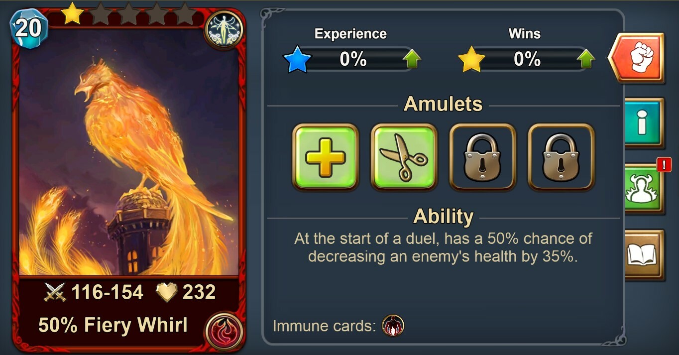 2. The ability error of the Lamia card is fixed. Lamia resurrects with the health amount that is equal to the percentage of her ability.