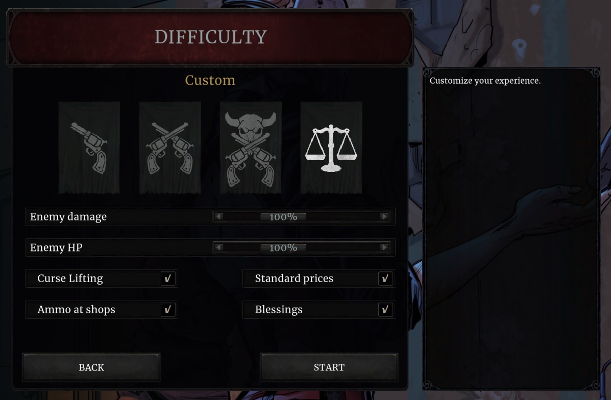 - [p]Custom Mode - where you can adjust the experience and include modifiers like no more ammunition at traders, turn off curse lifting, blessings and more! [/p]