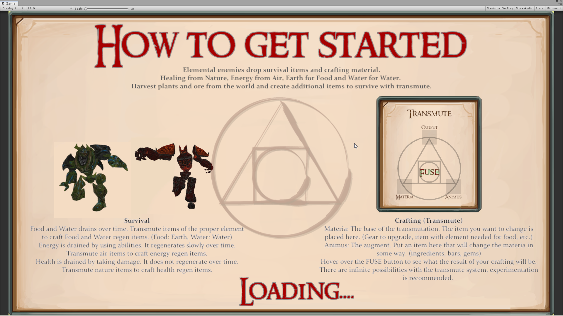 Transmute Gameplay relies heavily on the Transmute (crafting) system. You can craft healing items, food and water by using the transmute system. Place items in the materia and animus slot then hover over the FUSE button to see the transmute results. Experimenting with the transmute system is a good way to clear up space in your inventory.