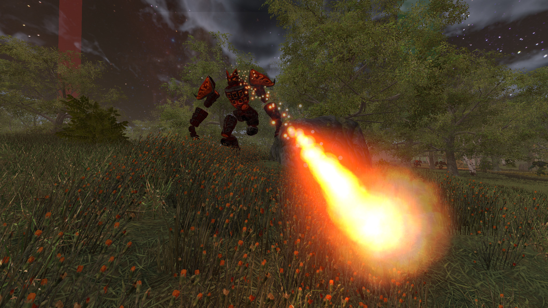 Encounter has been reworked. The monument no longer attacks but heals based upon the number of enemies it has spawned that are still alive. Killing the elementals that have spawned and continue to spawn, while dealing damage to the monument is key to success. A group is recommended and loot table and xp have been adjusted to reflect this.