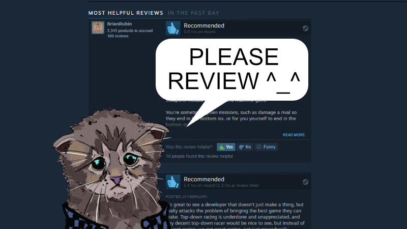 If you got the game on launch day, please consider writing a review! This would help out the success and future of the game a lot!