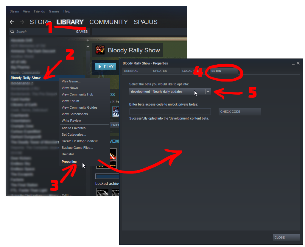 Right-click "Bloody Rally Show" in the list of your games