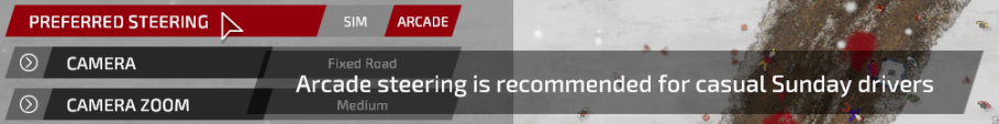 One of the biggest changes before launch was to review and overhaul all car stats, their acceleration, steering, gear shifts, brakes and handling in general. Cars now accelerate much smoother, and there are two steering modes to choose from: Arcade and Sim. Arcade steering works as it used to before, handling is sharp and snappy, allowing you to drive into sharp corners at high speeds. Sim steering is much less forgiving and more difficult to master. You will have to let go of the throttle and use brakes here and there to avoid flying out of the track.
