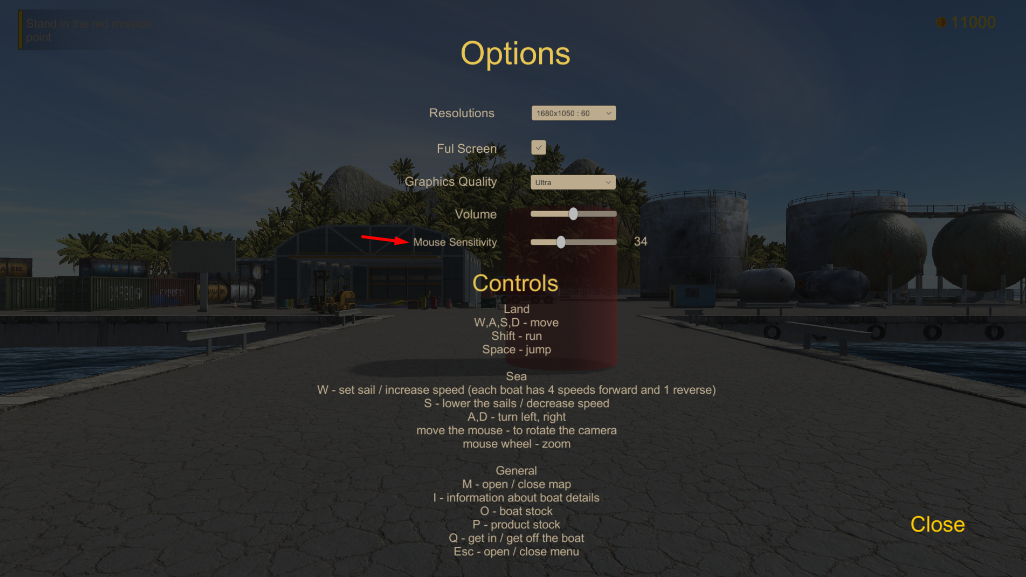 Changes on uiUpdated Main MenuUpdated Settings menu - now OptionsNow information about controls hereBoat control tips appear on ui when you are in a boatFix bug the grid scrolls up when buying or selling materials