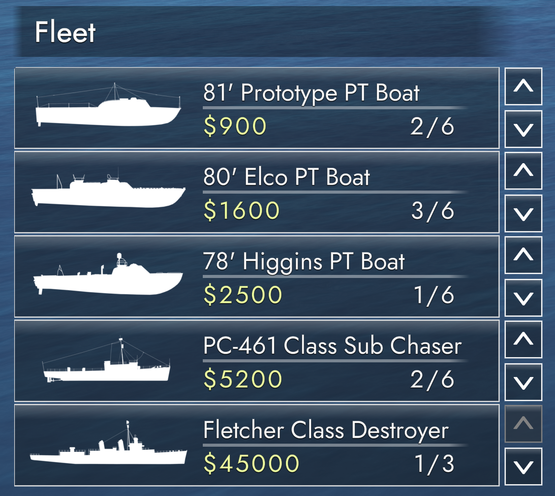 - First iteration of Fleet Endurance. - Basic weapon, resource, and camo customization revealed. - AI versions of two PT boats introduced. - Ki-45 introduced.