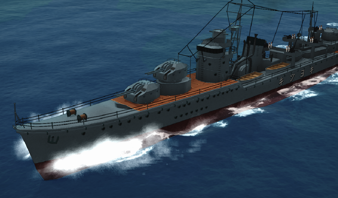 The ship you see in the screenshot above is the Kiyotsuki, a historically cancelled would-be sister to the Akizuki who came to life in Boat Crew.