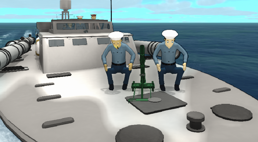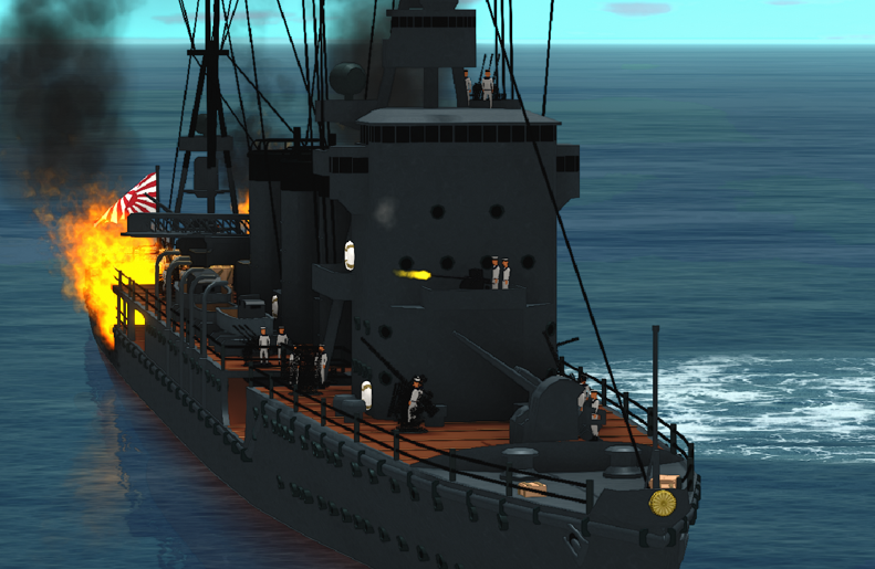 The 8 cm gun in the game was rather infamously a tube attached to a cube attached to another tube, as a holdover from Boat Crew's earlier, humbler days. The last of the venerable graphics-economizing shell-casters have been removed, being replaced with the 3"/50 Dual Purpose Gun model you can find on your own boat, although colored differently for the Japanese side.