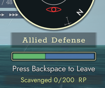 - Threat level visualization improvements. - Implemented engagement progress bar for campaign. - Default crew arrangement now consists of 1 medic and 3 gunners to compliment the loadout changes. - Added right click to cancel locked target UI hint next to targeting reticle. - Added scavenged RP counter. - Resource pickups will now turn red if there is no allocated room left.