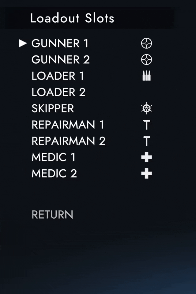 First of all, we will be introducing default loadouts, where you can select the outfit for a crew member as well as his role. Roles are of course something you can change in the heat of the battle, and that won't change, but we figured it would be quite helpful to have default loadouts you can snap back to with the press of a button.