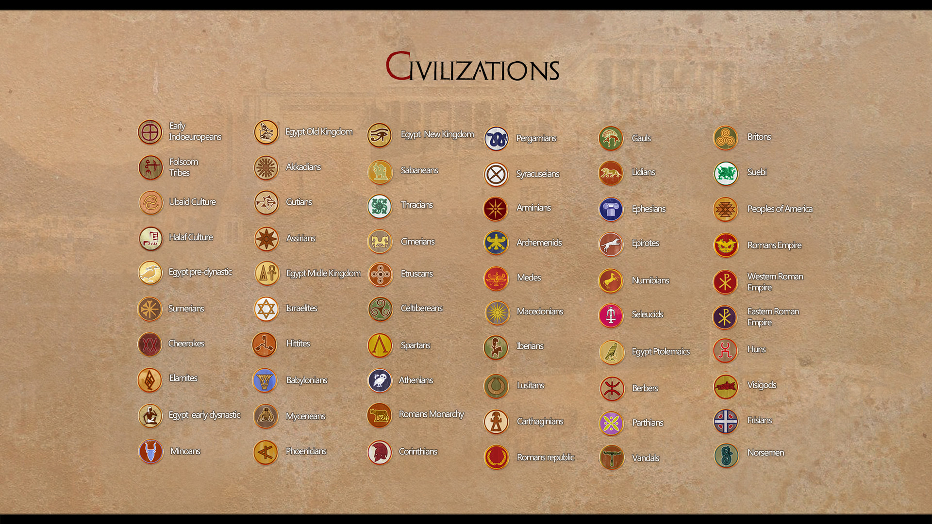 Unlike other strategy games where player chooses a particular faction, what we have is a sandbox-like combination of progression and cultures. At the beginning of the game, you will only have under your command a tiny nomadic tribe. This tribe are not Romans, nor Carthaginians, nor Persians nor Macedonians ... but depending on how you run them over the millennia, they may be one thing or another!