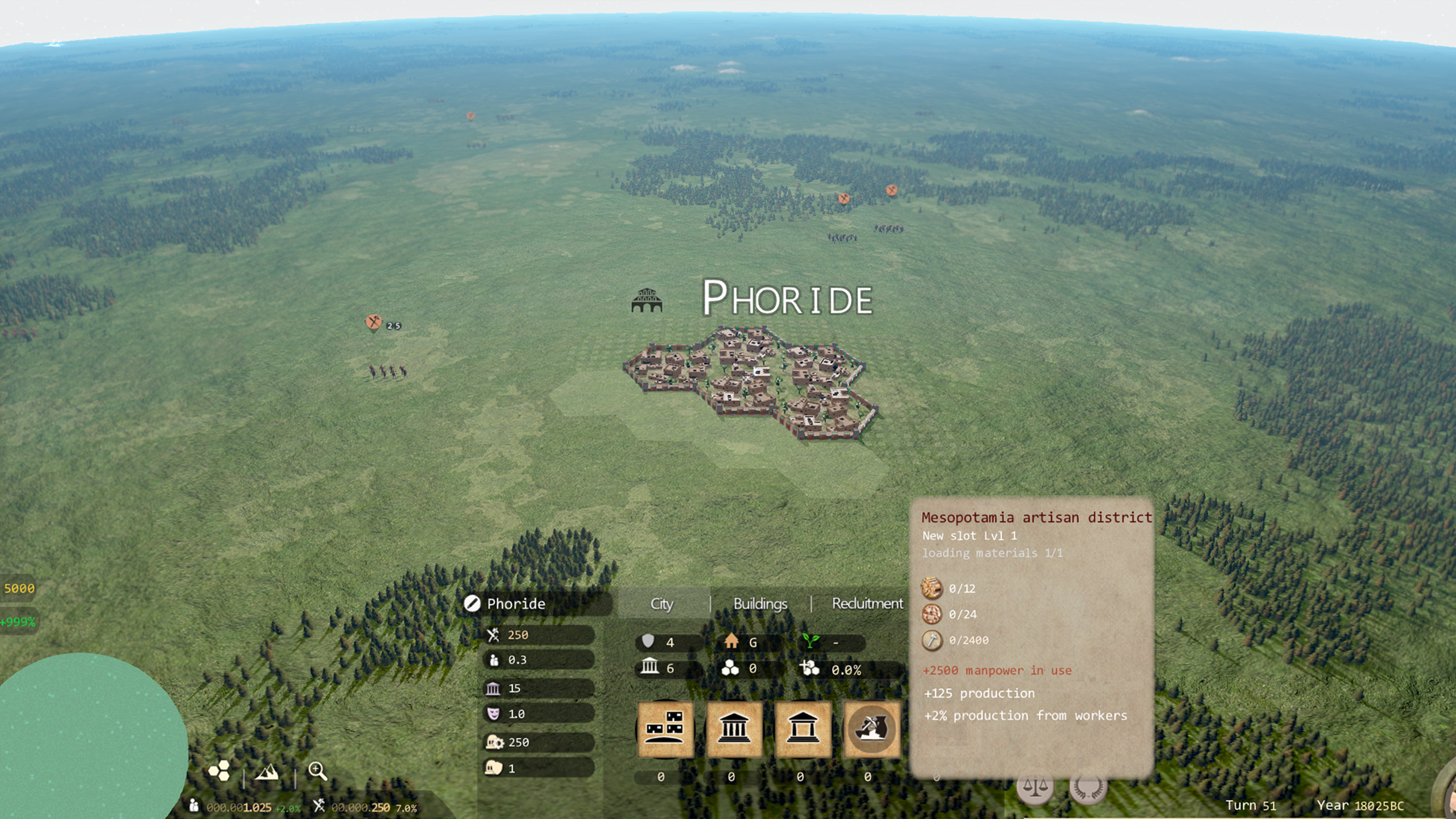 When the material requirements are full, the building process starts, where the amount of work is supplied by the production capability of the city.