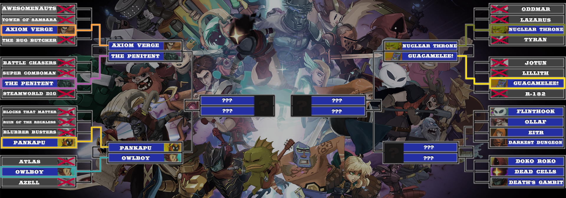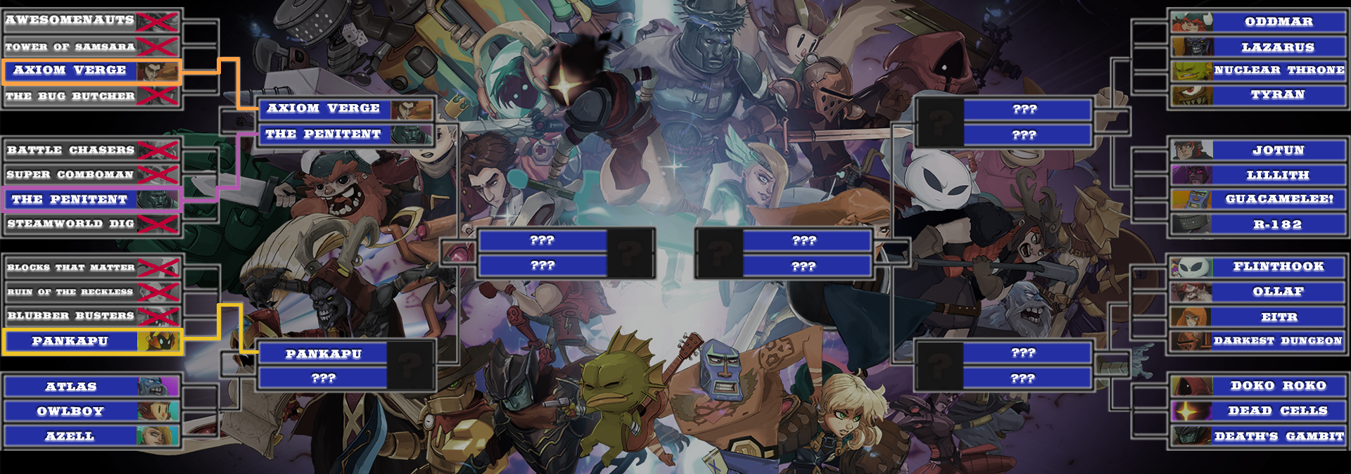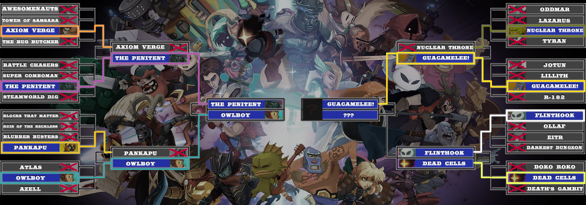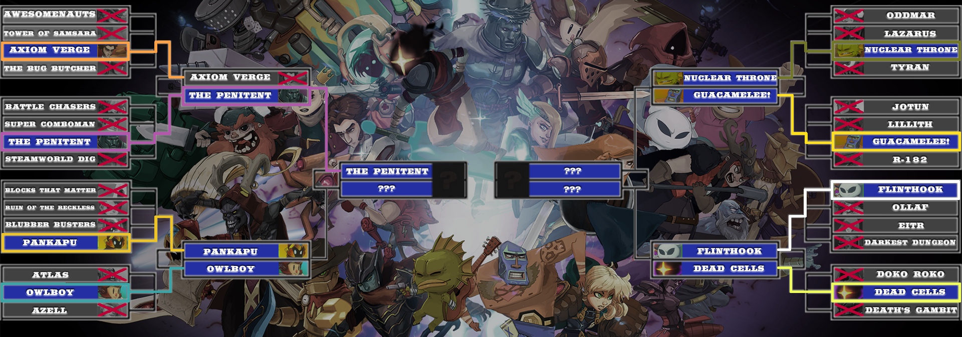 First, it's time to reveal the winner from last week's round. In a stunning upset Captain Flinthook stole the win from Darkest Dungeon's, Crusader and now progresses to the quarter finals!
