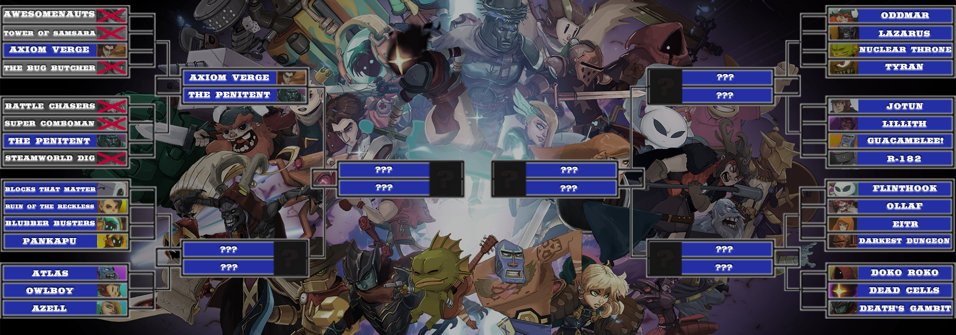 In case you missed it the winner of the Bounty Battle Bracket has been chosen. You voted and, the winner is ....... The Penitent! Who will now go on to face Trace from Axiom Verge
