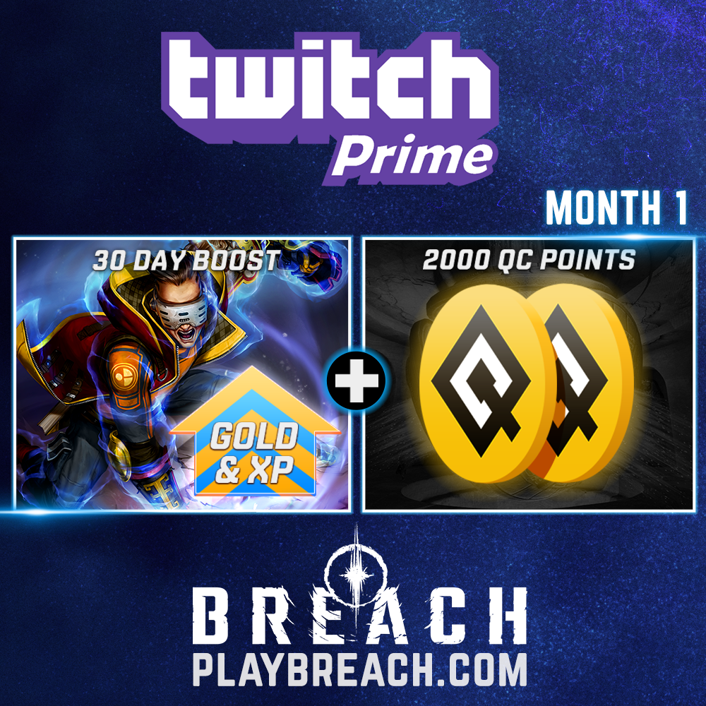 This will be a multi-month pack, and we're starting out of the gate with an easy to understand offer to all Twitch Prime members. You'll get access to Breach, along with 2,000 QC Points and a 30-day Boost added to your account. If you're already playing Breach, you too can redeem this offer and add the QC Points / Boost to your account as well. Make sure to check back when we announce next month's addition to the Action RPG Pack as well, which will contain something new!