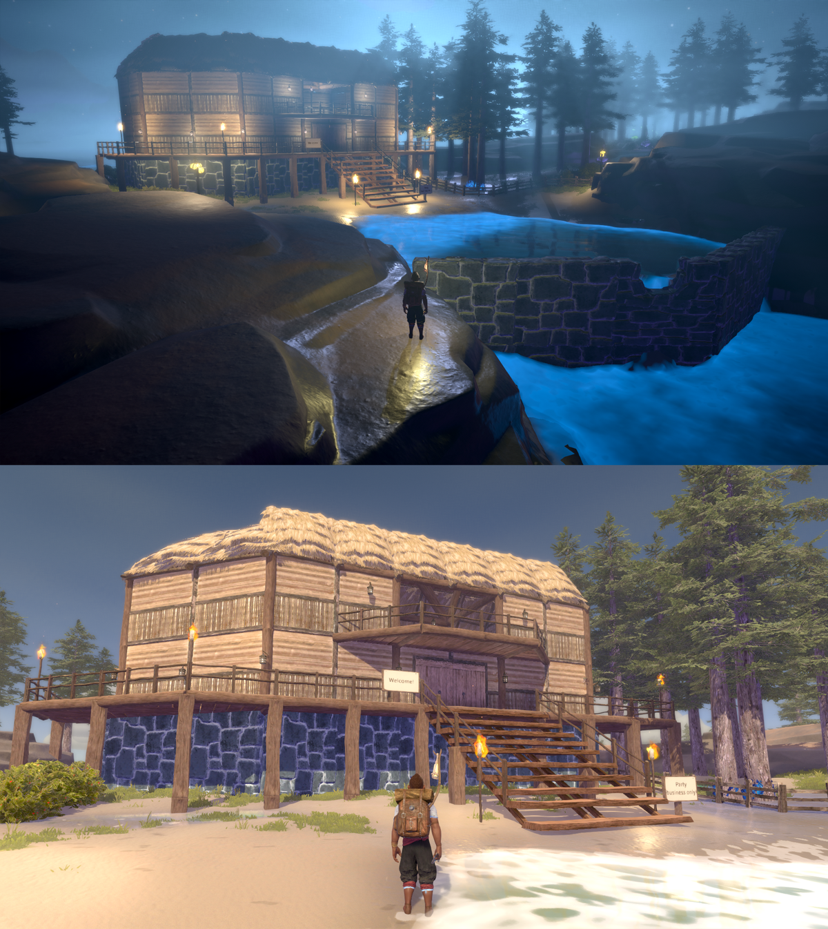 -Big improvement to WoodFloor building logic so its easier to do, plus anything that snaps onto wood floors is easier to do now. -Fixed pine tree death vfx spawning to better align with the trunk position -Updated fences to allow high precision placement like water pipes use. This lets users rotate them with or without snap. -Updated main menu video and button positions -Improved water reset logic when leaving a world to the main menu and entering into a world again -Small experience improvements to Wooden signs text editing -Update to golems and BlurCrystalPine Trees to always drop resources on death instead of having a low chance of not dropping something -Added the Grilling Table to the game. A third tier cooking station with more slots and 2x cooking speed, plus it wont catch surrounding things on fire no matter how much fuel you put in it. -Moved some of the advanced weapons out of the Builders Bench and into the Forge. -Updated weapon damage values to provide more contrast and better results depending on what you are attacking. -Update to Stone resources and hammers to allow Grey Stone harvesting without explosives. -Added Grey Stone walls and doors to the build-able list -Changed Golems to drop Golem Stone which can be used for early hammers -Update to various item and contraption icons -Update to the first island and the Pine island spawn values to generate more Red Stone boulders and Metal boulders -Combined Stone doors and wide stone doors into one contraption with variants instead -Improved ocean shader distance rendering where details had not been tiling correctly -Improved Golem movement to render smoother -Improved world and character selection menus in the main menu so when you delete a file it keeps the scroll position relatively in place instead of moving to a default selection -Improved building feedback to show when you are building too far away from a Dock and it wont let you place the object there. -Setup a Contraption Snap Widget to show which socket the contraption that is being placed is currently snapped to and rotating around -Setup a Wall Light contraption -Setup Round Wood Pillar variants and Horizontal Wood Beam variants -Setup interaction button ui to help users to know what button to press -Setup the new Railing object which can be used with stairs and looks better than a Fence as a decoration. -Setup Wood Beams contraption -Changed Wood floor to not require nails -Improved Projectile reticle texture -Update to fish save logic to avoid a case where they could save with zero fish in a school because it saved before the school was spawned -Fixed a bug with the lod system which could cause lods on objects to stop working -Improved unloading of distant NPC to improve performance