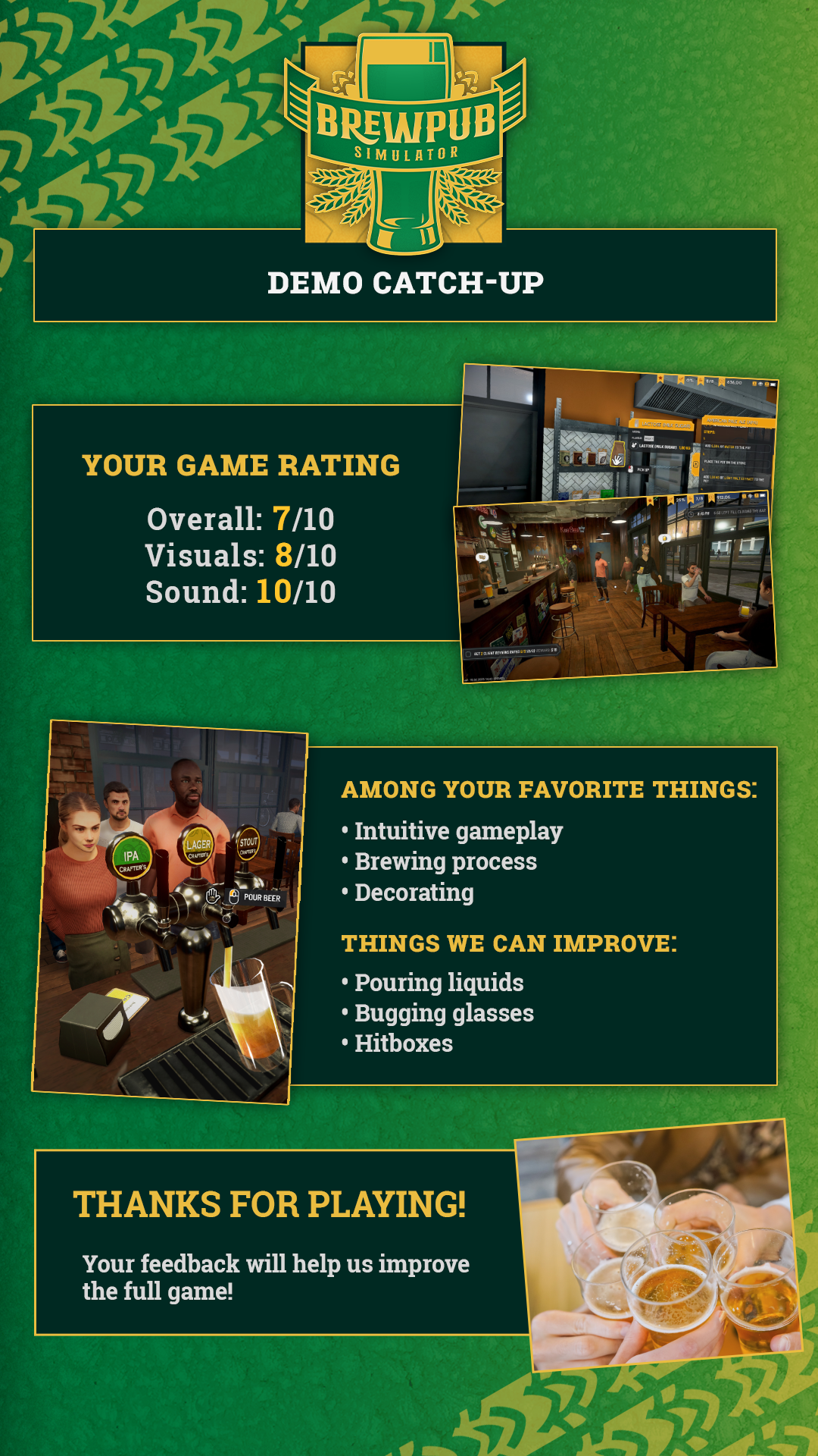 The Steam Next Fest is slowly coming to an end, but we know you've been having a great time with Brewpub Simulator. We even have proof! Some of you even recorded gameplay. How about taking a look at it?