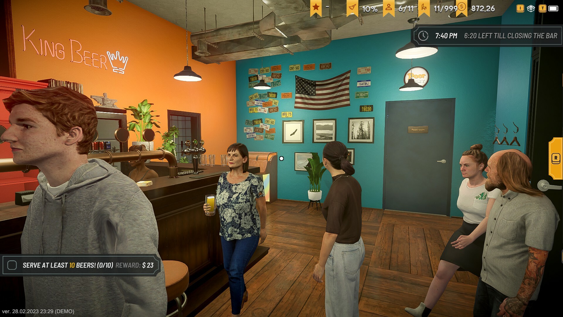 Take part in our contest and win the full game! What do you have to do? Play the demo during this Steam Next Fest and catch an unusual situation on a screenshot or video. Customer drinking out of a keg? Recorded! A nice tower made out glasses? Screen taken!
