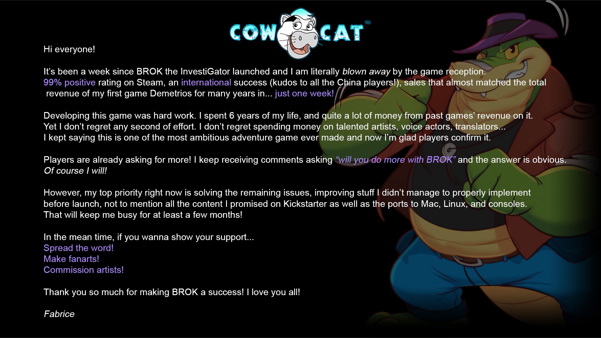 Here's my special message about the game release, let me repost it here!